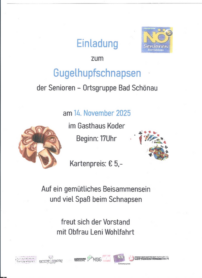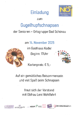 Gugelhupfschnapsen - Einladung der Ortsgruppe Bad Schönau